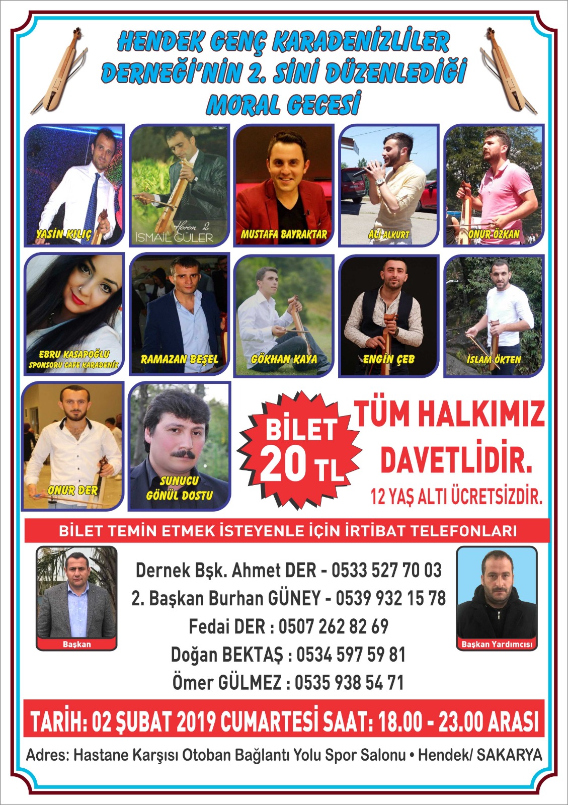 Hendek Genç Karadenizliler Derneği tarafından düzenlenen moral gecesine davet.