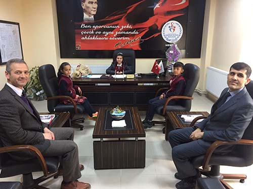 23 Nisan Ulusal Egemenlik ve Çocuk Bayramı nedeniyle temsili Hendek Gençlik Hizmetleri ve Spor müdürü Yeniyüzyıl ilkokulu öğrencisi olan Belinay Kaya Müdürlük koltuğuna oturdu.