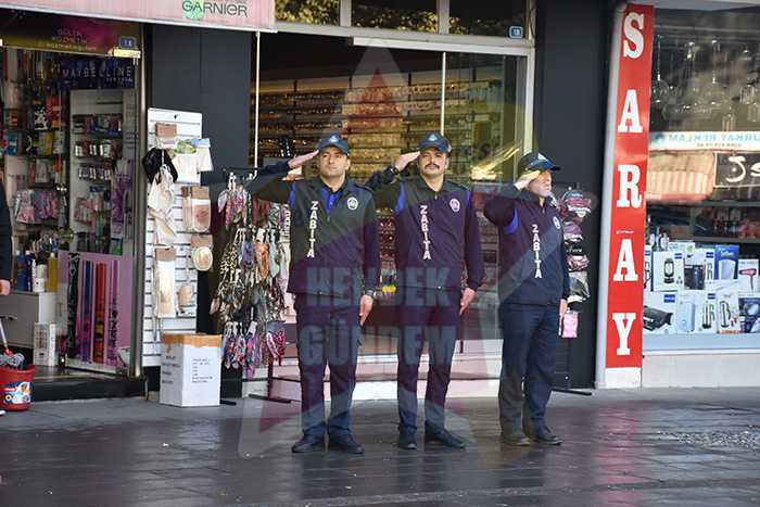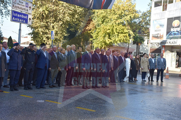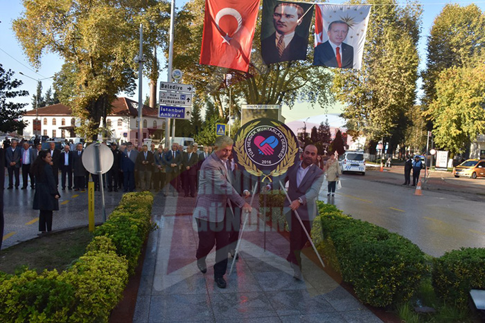 Kutlama programı öncesi Atatürk anıtına Muhtarlar Derneği Başkanı Kadir Yağlı ve Muhtarlar tarafından Muhtarlar Derneği çelengi sunuldu, ardından bir dakikalık saygı duruşu ve istiklal marşı okundu.