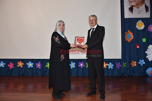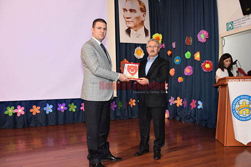 Tören sonunda Hendek İlçe Milli Eğitim Müdürlüğüne 6 Dönüm arazi bağışı yapan Arslan Kitapçıoğlu’na günün anısına Plaket takdim edildi.