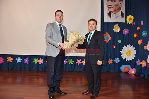 Saygı duruşu ve İstiklal marşının okunmasının ardından Okul Müdürü Orhan Karagözlü yaptığı konuşma ile Okul hakkında bilgiler verdi.