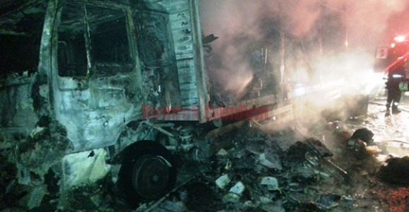 NAKLİYE KAMYONU TAMAMEN YANDI