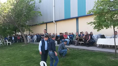 Fabrika yöneticileri, Türk Metal Sakarya Şube Başkanı, Sendika Temsilcileri ve Çalışanlarla birlikte Soma'da yaşanan maden kazası ile ilgili durum değerlendirmesi yapılarak , Fabrika Müdürü Korhan Aktulga tarafından meydana gelebilecek iş kazalarıyla ilgili her zaman olduğu gibi birlik ve beraberlik içerisinde hareket edip önceden tedbirler alınması ile ilgili konuşma yaptı.Konuşmanın ardından Fabrika içersinde mevlid-i şerif okutulup dualar edildi.