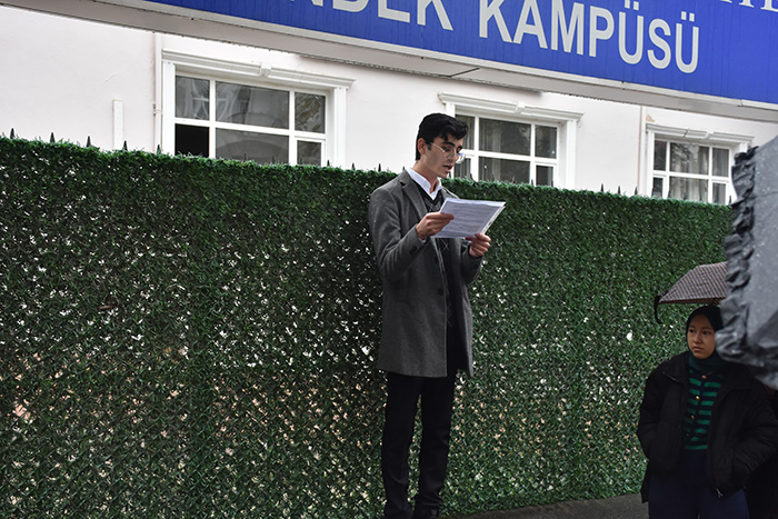 Eğitim Fakültesi ana giriş kapısı önünde düzenlenen basın açıklamasında İsrail’e sloganlar ile tepki gösteren Öğrenciler Filistin’e destek çağrısında bulundu.