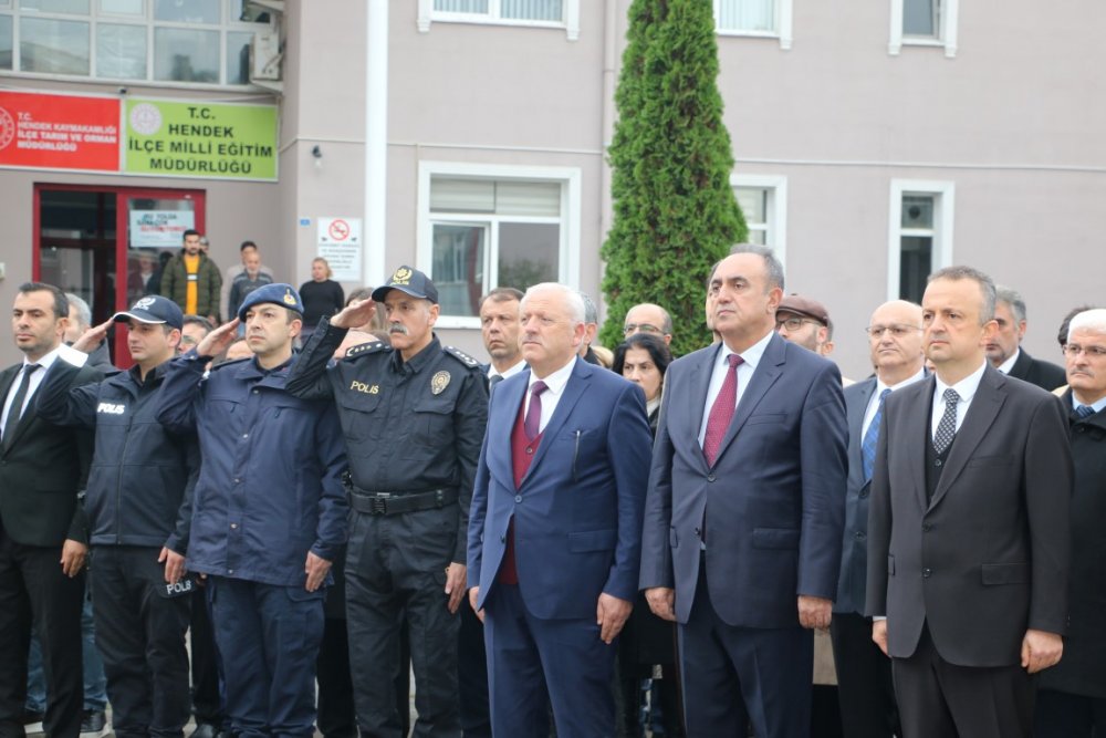 Hendek Kaymakamlığı önünde düzenlenen törene Hendek Kaymakamı Halil İbrahim Acır, Hendek Belediye Başkanını Vekâletten Başkan Yardımcısı Hüdaverdi Bahadır, Hendek İlçe Emniyet Müdürü Mesut Eyigün, Hendek İlçe Jandarma Komutanı Yüzbaşı Süleyman Sercan Candan,Siyasi Parti İlçe Temsilcileri, Sivil Toplum Kuruluşları temsilcileri, Öğretmen ve Öğrenciler katıldı.