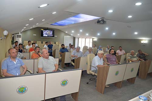 Hendek Belediyesi Meclis Salonunda yapılan toplantıya, Hendek Belediye Başkanı İrfan Püsküllü, Başkan Yardımcısı Abdullah Bozalan, Plan ve Proje Müdürü Tunahan Kuru ve Orta Camii esnafı ve bina sahipleri katıldı.