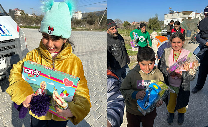 Hendek’te kampanya düzenleyerek topladıkları oyuncakları deprem bölgesindeki çocuklara dağıtan Hayat Arama Kurtarma Derneği üyeleri “Hatay merkezdeyiz. Hendek’te başlattığımız kampanyamız doğrultusunda topladığımız oyuncakları Hatay Merkez ve ilçelerinde bulunan çadır kent ve köylere elden dağıtımını yapıyoruz.