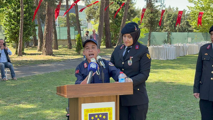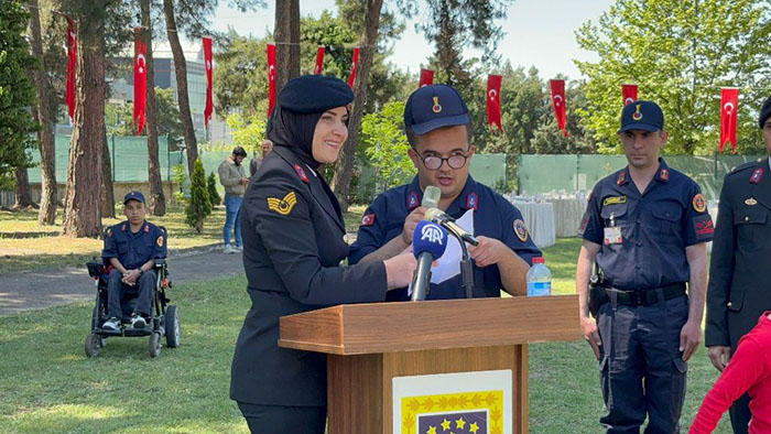Özel birey Murat Sarıoğlu'nun Bayrak şiirini okumasının ardından kürsüye çıkan diğer bir özel birey ise yaptığı konuşmasında, Sakarya İl Jandarma Komutanlığı'nın çatısı altında, hepinizin huzurunda bizler bir günlük dahi olsa yemin ederek bugün gerçek birer asker olduk.