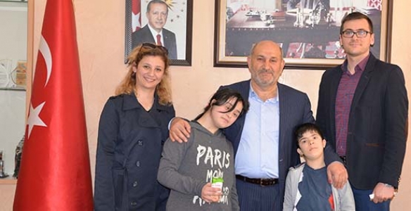 Down Sendromu Farkındalık Günü nedeniyle, Hendek Özel Soner Çokşen Özel Eğitim Rehabilitasyon Merkezi öğrencileri Tuçe Topkara ve Arda Çakan, öğretmenleri Selime Koşmak, Cengiz Bayram ile birlikte, Hendek Belediye Başkanı İrfan Püsküllü’yü makamında ziyaret etti.