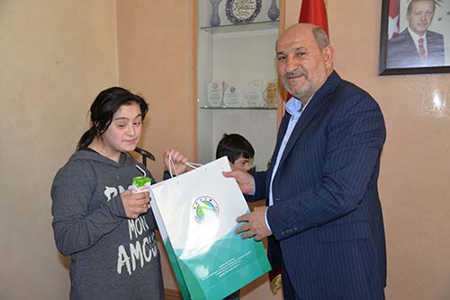 Başkan Püsküllü, Tuçe ve Arda ile bir süre sohbet etti.