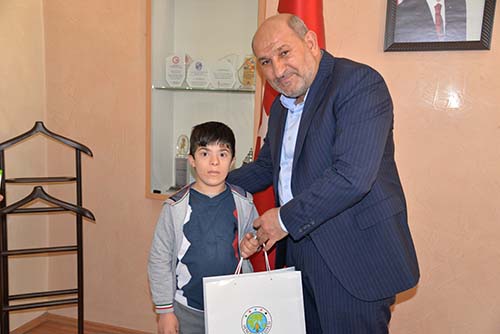 Başkan Püsküllü, ziyaretlerinden dolayı çocuklara ve öğretmenlerine teşekkür ederek, günün anısına çocuklara hediye verdi.