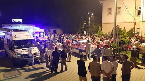 Kazazede yakınları, Hendek Devlet Hastanesi önünde kalabalık oluşturdu.