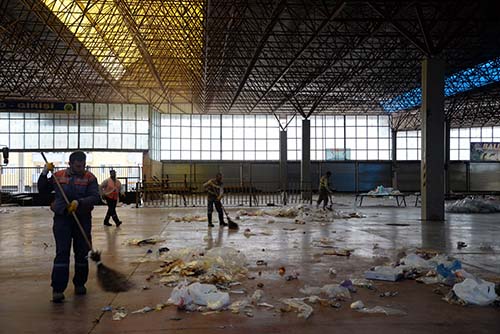 Her hafta Salı günü kurulan pazarın ardından Çarşamba Günü, temizlik çalışanları kapalı pazaryerinin temizliğini yapıyor. Deterjanlı su ile yıkanarak, pazarın temizliği sağlanıyor. Meyve – sebze ve balık satışının yapıldığı Pazar yeri deterjan ve fırçalarla yıkanarak tazyikli su ile temizleniyor.