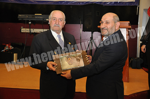 Polis Gecesinde Asayiş Hizmetleri destekleme ve yaşatma Derneği Başkanı Rüştü Çürüksulu’ya Hendek Belediye Başkanı İrfan Püsküllü ödülünü verirken , Yılın Polisi ödülünü alan Polis Memuru Bilal Taştan’a  Garnizon Komutanı Yüzbaşı Hasan Dağcı takdim etti.