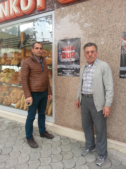 Terör olaylarına dair fotoğrafların da yer aldığı uyarı afişlerinin üzerinde, "Teröre Hep Birlikte Dur Diyelim. İhbarlarınız için Alo terör ihbar hattı 140. İhbar ödüllendirilecektir. Teröristi İhbar Et Huzur ve Güvenliğe Destek Ol" şeklinde ifadeler yer adı.
