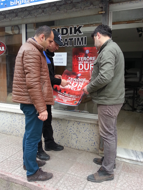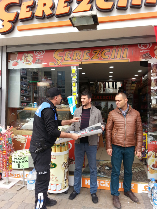 Ülkemizde son zamanlarda artan terör olayları sonrası İlçe Emniyet Müdürlüğü ekipleri “Teröre Hep Birlikte Dur Diyelim” sloganı altında hem çarşı esnafını ziyaret etti hem de vatandaşları bu konuda bilgilendirdi.