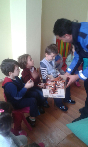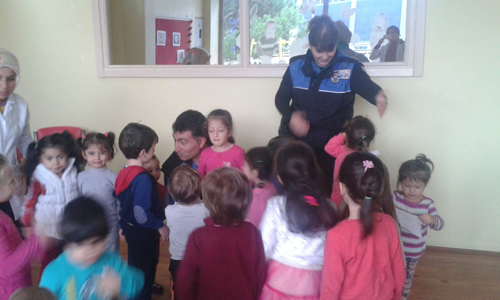 Toplum Destekli polisler oyun evine çocukların alkışları ile karşılandılar. Çocukların sevgisini kazanan polisler çocuklarla beraber güzel bir vakit geçirdiler. Yapılan ziyarette öğrencilere polislik mesleğini sevdirmek, polisin her zaman yanlarında olduğunu hissettirmek,, polis- çocuk ilişkilerini geliştirmek amaçlanmıştır. Çocuklarla sohbet eden toplum polisleri “polis olmak istiyor musunuz” sorusuna sınıftan topluca “evet” cevabını aldılar. Trafik kurallarını çocuklara anlatan polisler özellikle arabalarda çocukların arka koltukta oturmalarını istediler. Güvenlik anlamında da çocukların yapabileceği çok önemli olguların olduğunu belirten polisler, çocukların yabancılarla konuşmamalarını ifade ettiler. Neşeli sohbetten sonra çocuklara kek ikram eden polisler, çocuklarla fotoğraf çektirdiler. Özel Sevgi Pınarı ve Oyun evi müdürü, “bu yaştaki çocuklarda polis korkusu vardır. Amacımız böyle bir aktiviteyle çocuklarımıza polisin güler yüzünü göstermekti. Ziyaretin amacına uygun olduğunu düşünüyorum. Dedi. Oyun evi müdürü, Hendek İlçe Emniyet Müdürlüğüne ve Toplum Destekli Polislerine ziyaretten dolayı duydukları memnuniyetlerini dile getirdi.