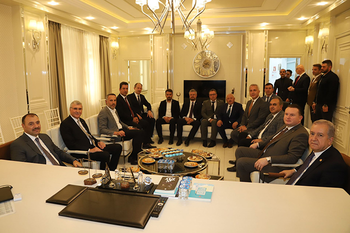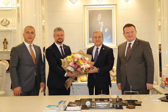 Devlet Bahçeli Fen Lisesi temel atma ve 10 ayrı eserin toplu açılış töreni sonrasında; törene katılan protokol mensupları Hendek Belediye Başkanı Turgut Babaoğlu’nu makamında ziyaret etti.