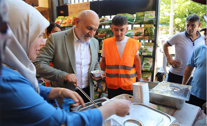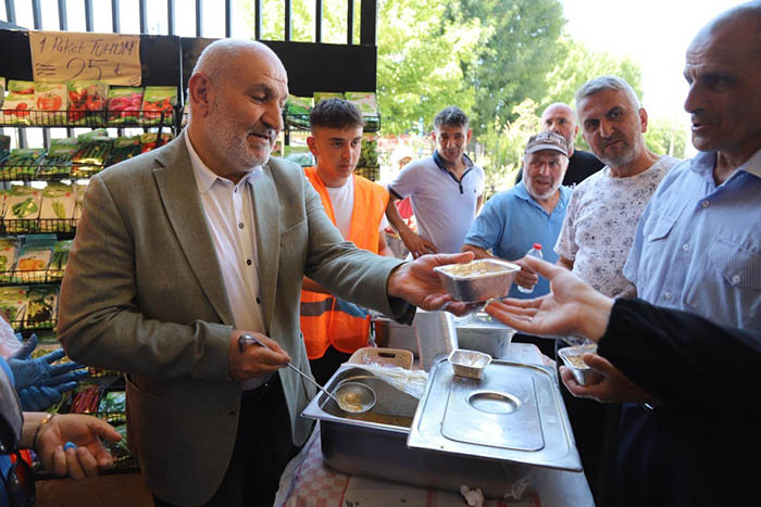 Aşure ikramı sırasında açıklamalarda bulunan Başkan Püsküllü, paylaşmanın, dayanışmanın ve birlik ruhunun önemine dikkat çekerek, “Aşure; sevgiyle karılan, sabırla pişirilen, birlik ve beraberliğimizin simgesidir.