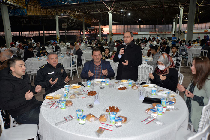 Hendek Kapalı Pazar yerinde düzenlenen iftara Hendek Belediye Başkanı Turgut Babaoğlu’nun şehir dışında olmasından dolayı Başkan vekili olarak Hüdaverdi Bahadır katıldı.