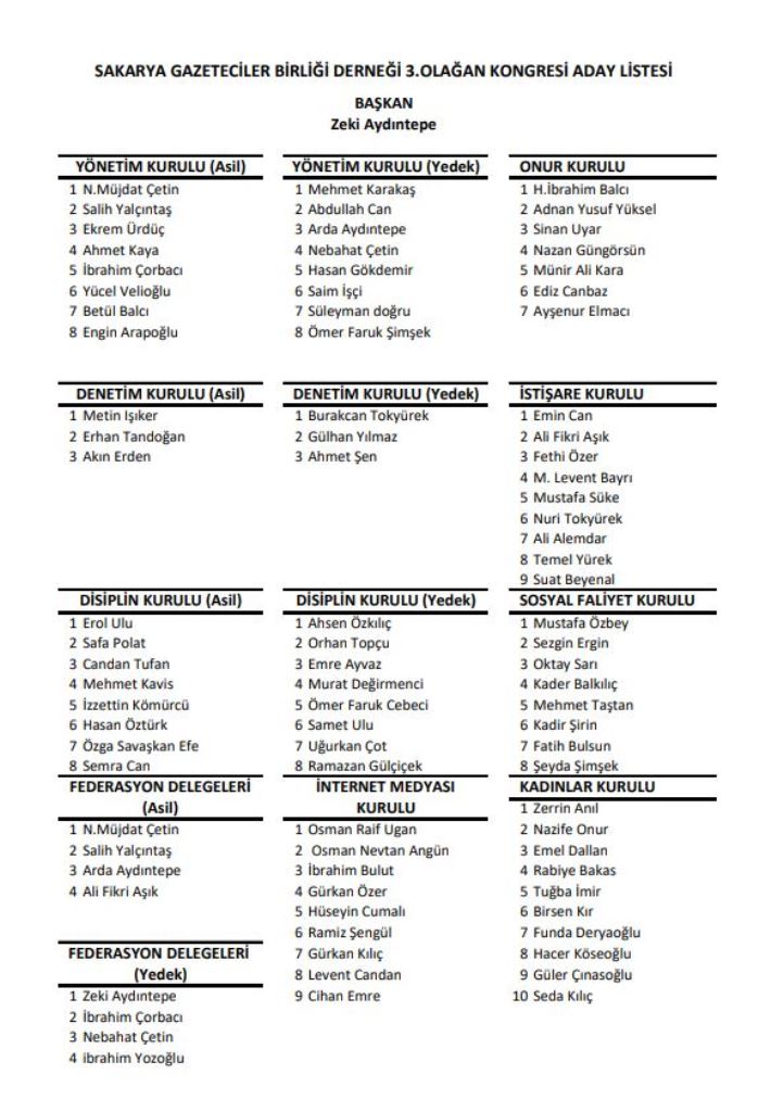 Sakarya Gazeteciler Birliği Yönetimi şu isimlerden oluştu;