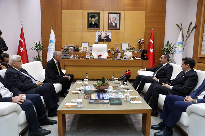 Bir dizi programlara katılmak üzere Sakarya’ya gelen Milli Savunma Bakan Yardımcısı Muhsin Dere, Büyükşehir Belediyesi’ni ziyaret etti. Büyükşehir Belediye Başkanı Ekrem Yüce’nin karşıladığı Bakan Yardımcısı Dere’ye ziyaretinde Askeri Fabrikalar Genel Müdürü İmdat Ersoy eşlik ederken, Büyükşehir ve SASKİ bürokratları da hazır bulundu. Bakan Yardımcısı Muhsin Dere, Sakarya’da bulunmaktan duyduğu memnuniyeti ifade ederek, Başkan Yüce’ye çalışmalarında başarılar diledi.