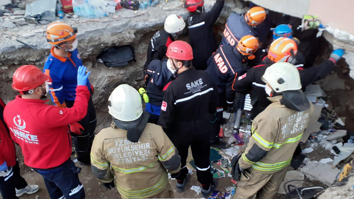 Hendek Belediyesinin destekleriyle 2 araç ve 12 personelle yola çıkan ve gece saat 03.00 sularında İzmir’e varan SAKE, Sakarya AFAD ekibiyle birlikte Bayraklı’da arama kurtarma çalışmalarına vakit kaybetmeden başlarken, Sakarya AFAD ve SAKE ekibinin çalışmaları ile enkazlardan 3 Vatandaş canlı olarak çıkartılırken, 1 Vatandaşın ise cansız bedenine ulaşıldığı öğrenildi. Enkazlarda arama ve kurtarma çalışmalarının aralıksız olarak devamettiği gelen bilgiler arasında.