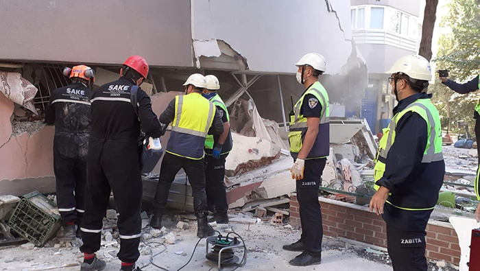 Ege Denizi'nin İzmir Seferihisar açıklarında dün meydana gelen 6,6 büyüklüğündeki deprem sonrasında arama kurtarma çalışmalarına destek vermek için yola çıkan Sakarya Arama Kurtarma Ekibinin (SAKE) çalışmalara katıldı.