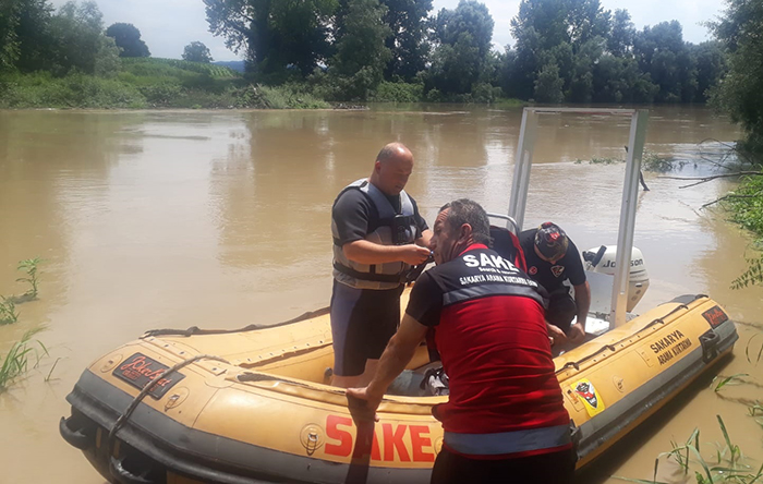 Sakarya Arama Kurtarma Ekibi (SAKE) Sakarya nehrinde gerçekleştirilen aram kurtarma çalışmalarına destek veriyor.