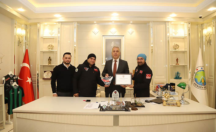 Ziyarette konuşan Sakarya Arama Kurtarma Ekip (SAKE) lideri Erdal Aydın, “Kahramanmaraş’ta yaşanan ve asrın felaketi olarak nitelendirilen deprem nedeniyle deprem bölgesine giderek arama kurtarma çalışmalarına katılan ekiplerimize vermiş olduğunuz destek ve katkılardan dolayı Hendek Belediye Başkanımız Sn. Turgut Babaoğlu’na teşekkür ediyoruz.