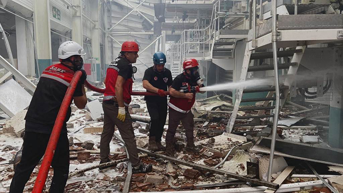 Sakarya Arama Kurtarma Ekibi (SAKE) Hendek’te makarna fabrikasında meydana gelen patlama sonra yangın çalışmalarında gönüllüleri ile destek verdi.