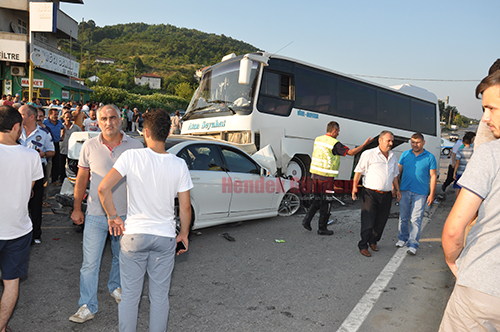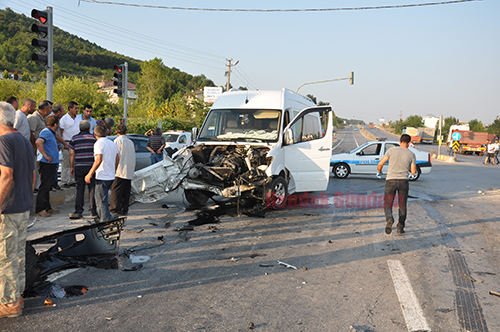 Düzce istikametinden Hendek istikametine giden 54 KS .. plakalı tırın geçişi sırasında meydana gelen kaza ya 54 EP.. plakalı yolcu minibüsü 54 KT .. araç 34 GMC .. ve 06 MUJ .. Plakalı araçlar kazaya karıştı.