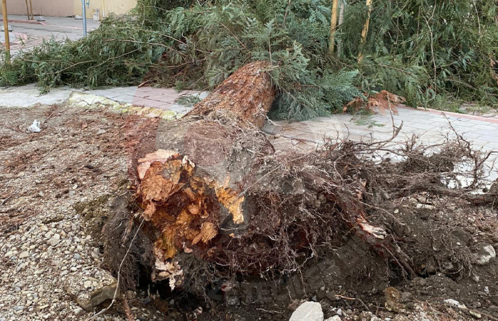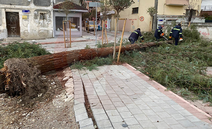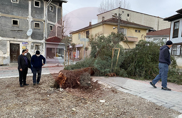 Rüzgâr nedeniyle devrilen ağaç ekiplerin çalışması sonucu bölgeden kaldırılırken, olay esnasında bölgede kimsenin olmaması olası bir faciayı önlemiş oldu.