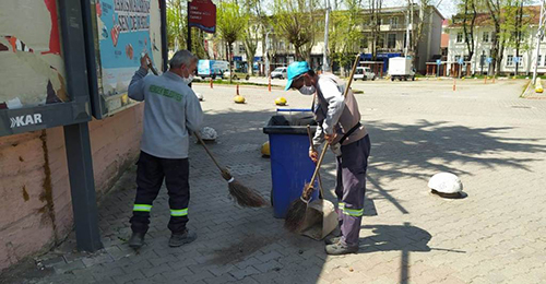 Yine diğer ekipler şehir merkezi başta olmak üzere mahallelerde park ve meydanlarda temizlik ve yıkama çalışması yaptı. 3 ayrı ilaçlama ekibi de cadde, yollar, parklar, meydanlar, duraklar ve kapalı olan kamu kurumları başta olmak üzere 770 ayrı noktada dezenfekte çalışması yaptı.
