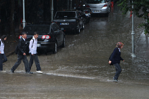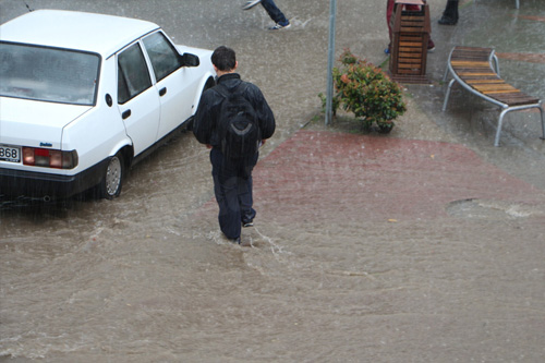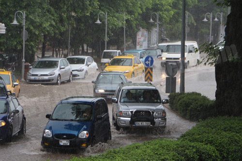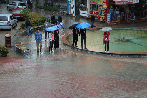 Hendek merkezde yağmur sularının kaldırım seviyelerine kadar yükselmesi Vatandaşlara zor anlar yaşattı.