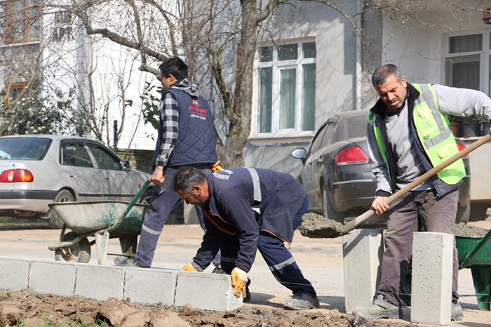 Kaldırım, cep park ve çevre düzenlemesini içeren çalışmalar tamamlandığında bu üç sokak, modern bir görünüm kazanırken, yayalar içinde daha güvenli hale getirilmiş olacak.