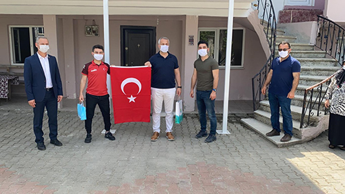 Çelenk töreninin sona ermesinin ardından Hendek Belediye Başkanı Turgut Babaoğlu, Gençlik ve Spor İlçe Müdürü Süleyman Akıcı ve antrenörlerle birlikte 20 yaş altı sporcuları evinde ziyaret etti.