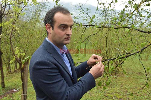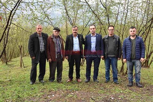 Dikmen Mahalle Muhtarı Menderes Ayvaz ve bir grup fındık üreticisiyle Fındık Bahçesini gezen İlçe tarım müdürü ve ziraat mühendisi Nadim Aktürk’le birlikte incelemede bulundu.