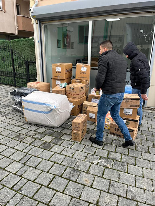 Dernek, bugün de deprem bölgesi olan Kahramanmaraş'ın Elbistan ilçesine 2 TIR daha yardım göndererek depremde zarar görmüş vatandaşlarımız için katkı vermeye devam etti. Bugün gönderilen TIR'ların biri ekmek yapımı için un ile dolu olurken, diğer TIR da ise, yakacak için fındık kabuğu, soba ve boruları takım olarak, 5000 adet kışlık mont, çocuk bezi, kişisel bay ve bayan hijyen malzemeleri, ve de battaniye bulunuyor.