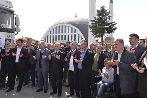 Hendek’ten Suriye’ye çıkacak olan 25 ton un dolu yardım tırı, İlçe Müftüsü Abdurrahman Şahin tarafından okunan duanın ardından yola çıktı.