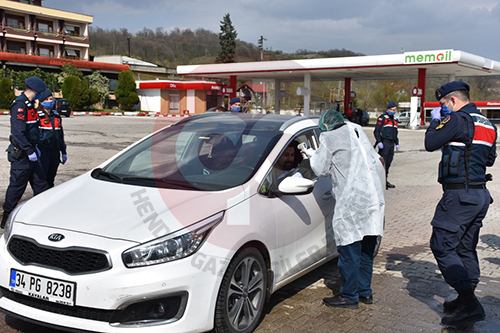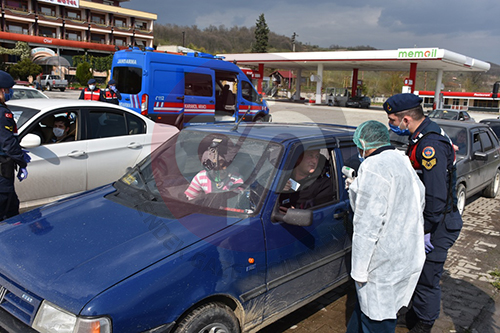 Türkiye’de de bugün itibariyle 131 can alan koronavirüs tedbirleri kapsamında Hendek’te giriş ve çıkışlarda Jandarma, polis, ilçe sağlık ve zabıta ekipleri güvenlik önlemleri alıyor, oluşturulan noktalarda araçlar kontrol edilerek vatandaşların ateşi ölçülüyor.