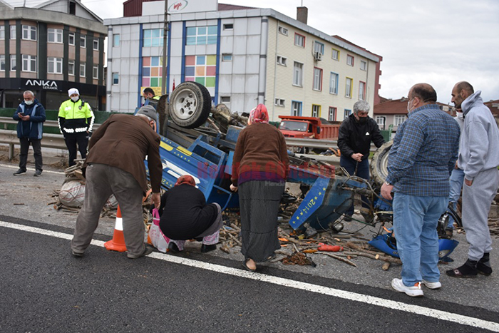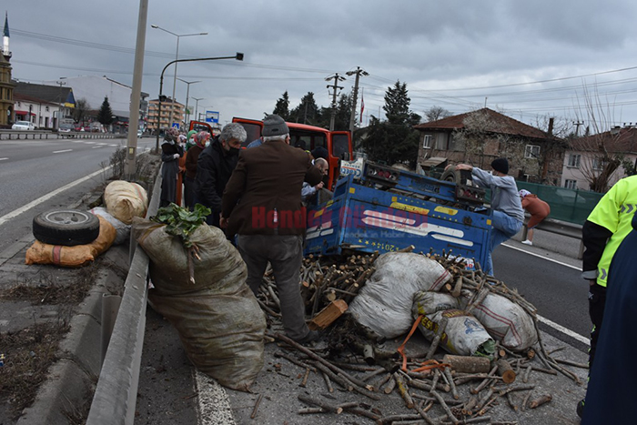 Kaza sonucu trafik akışı Trafik ekiplerince tek şeritten sağlanırken, kazalı araç ve odunların kaldırılması sonucu trafik akışı normal seyrine döndürüldü.
