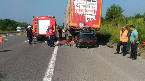 Ankara’dan İstanbul istikametine gitmekte olan Ahmed Saber Abdullah idaresindeki 54 MA... plakalı otomobil sürücüsünün direksiyon hakimiyetini kaybetmesi sonrası park halindeki tır’ın altına girdi.