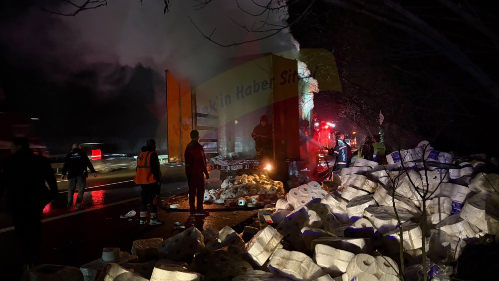 Yangın nedeniyle Otoyol Ankara istikametinde trafik akışı Jandarma ve Karayolları ekiplerince çift şeritten kontrollü olarak sağlanırken, ekipler tarafından söndürülen yangın sonucu tırda bulunan selpak ve kağıt havlular kullanılamaz hale geldi, tır dorsesinde ise maddi hasar oluştu.
