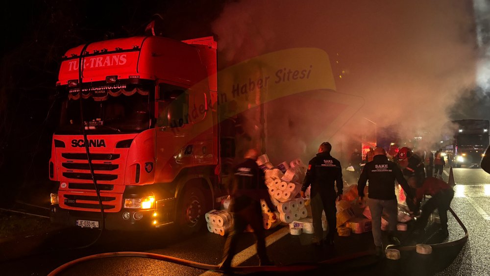 Edinilen bilgilere göre, bir ihbar nedeniyle Tem otoyolu Hendek Kalayık mevkii Ankara istikametinde seyir halinde olan Karayolları ekiplerinin yabancı plakalı bir tırın dorse kısmından dumanlar yükseldiğini fark etmesi üzerine tır güvenli bir alanda durdurularak kasa ile dorse kısmı ayrıldı ve 112 ekiplerine haber verildi.