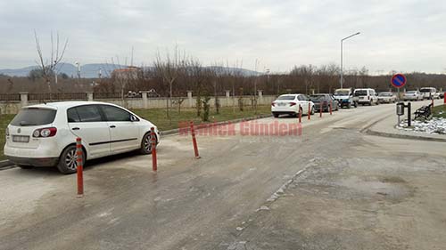 Sürücülerin gelişi güzel özelikle otoban yolu hastaneye giriş yerine gelişi güzel park etmeleri trafik’in aksamasına yol açıyor.