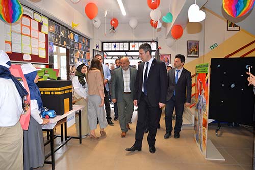 Açılış sonrası çocukların hazırladıkları projeler gezilerek, çocuklardan projeleri hakkında bilgi alındı.