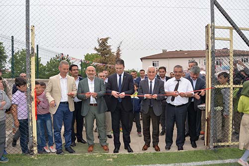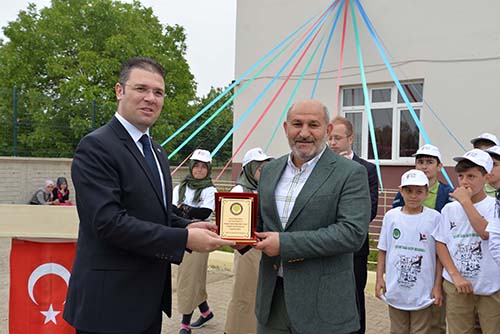 Konuşmaların ardından, okula yapılan spor sahasına desteklerinden dolayı Hendek Belediye Başkanı İrfan Püsküllü ’ye teşekkür plaketi ve tablo hediye edildi.