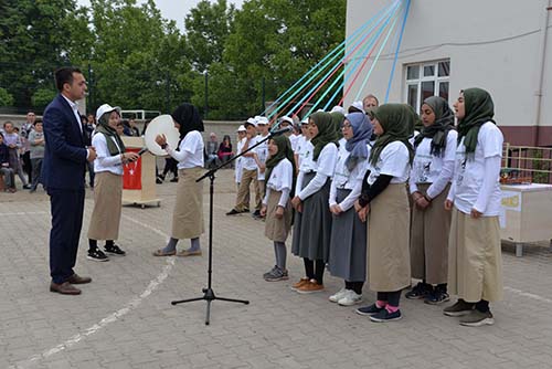 İlçe Milli Eğitim Şube Müdürü Bedir Bayram da konuşmasında “ Yıl boyu öğrencilerimiz tarafından proje hazırlıkları yapıldı. Projelerin tamamı öğrencilerimizin araştırmaları ve merak ettiği konularla ilgili hazırladıkları projelerdir. TÜBİTAK Bilim programı öğrencilerimizin projelerine büyük destek olmuştur. Bizler öğrencilerimizin yıl boyu büyük heyecanla hazırladıkları projeleri hep birlikte göreceğiz. Bizlerin hayal edemediği şeyleri hayal edebiliyorlar. Bu programda emeği geçen başta okul müdürümüz, öğretmenlerimiz ve öğrencilerimizi tebrik ediyorum “ dedi.
