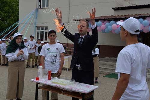 Açılış programında öğrenciler tarafından gösteri deneyleri yapılarak, okulun öğrenci korosu tarafından da ilahiler söyledi.